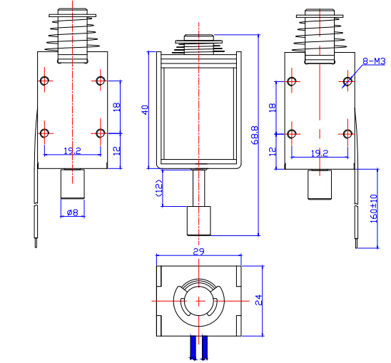 備注:如果上述產品和您使用的產品有出入,請您致電我們,我們會根據客戶的不同需求設計各種推拉式電磁鐵。磁心科技以技術為核心競爭力,我們有一支從事電磁鐵10多年的工程師。歡迎您致電我們,磁心科技---用心服務。