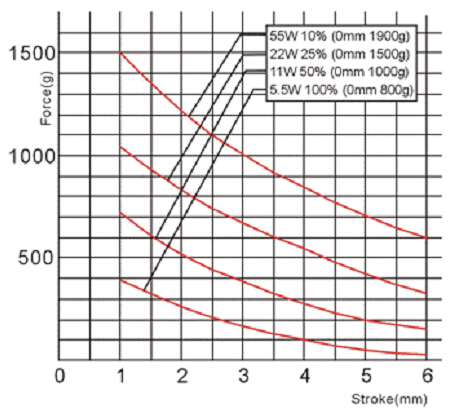 2,電磁鐵行程和力量曲線圖: