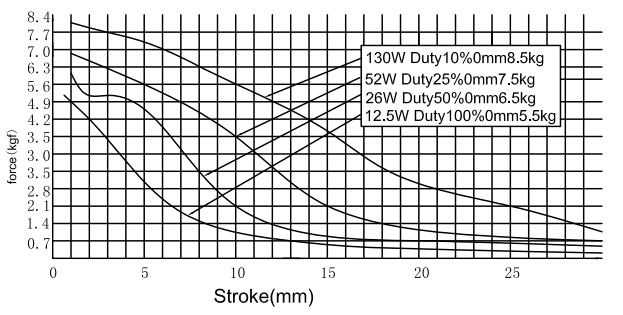 縱向:代表電磁鐵在對應行程時的力量   單位為克(g)